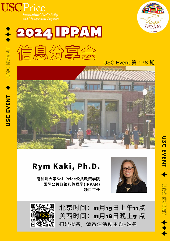 欢迎参加2024年11月19日北京时间上午11:00南加州大学Sol Price公共政策学院举办的在线讲座《2024 IPPAM 信息分享会》。马上注册!