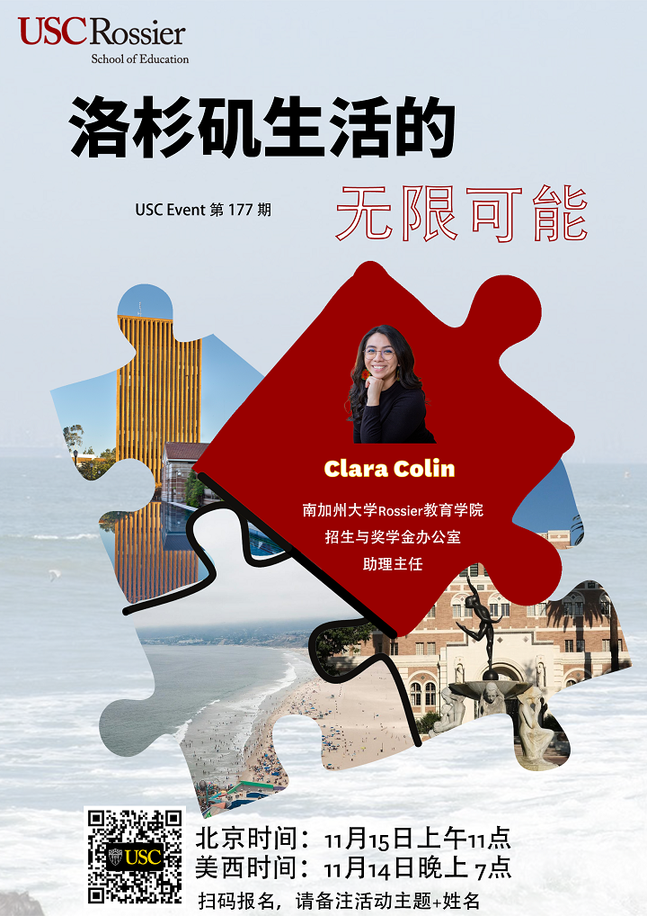 欢迎参加2024年11月15日北京时间上午11:00南加州大学Rossier教育学院举办的在线讲座《洛杉矶生活的无限可能》。马上注册!
