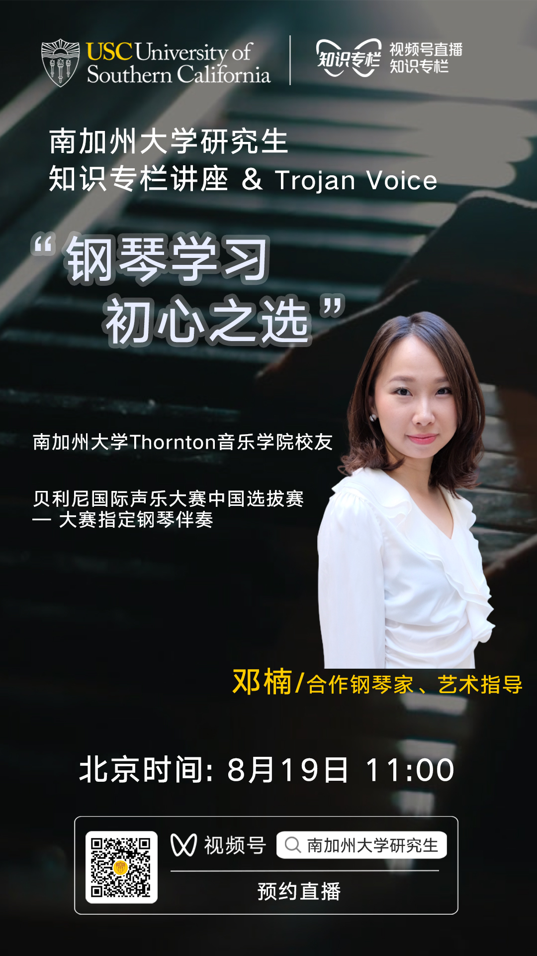 欢迎参加2022年8月19日北京时间上午11:00南加州大学国际学院举办的在线讲座《钢琴学习,初心之选》。马上注册!