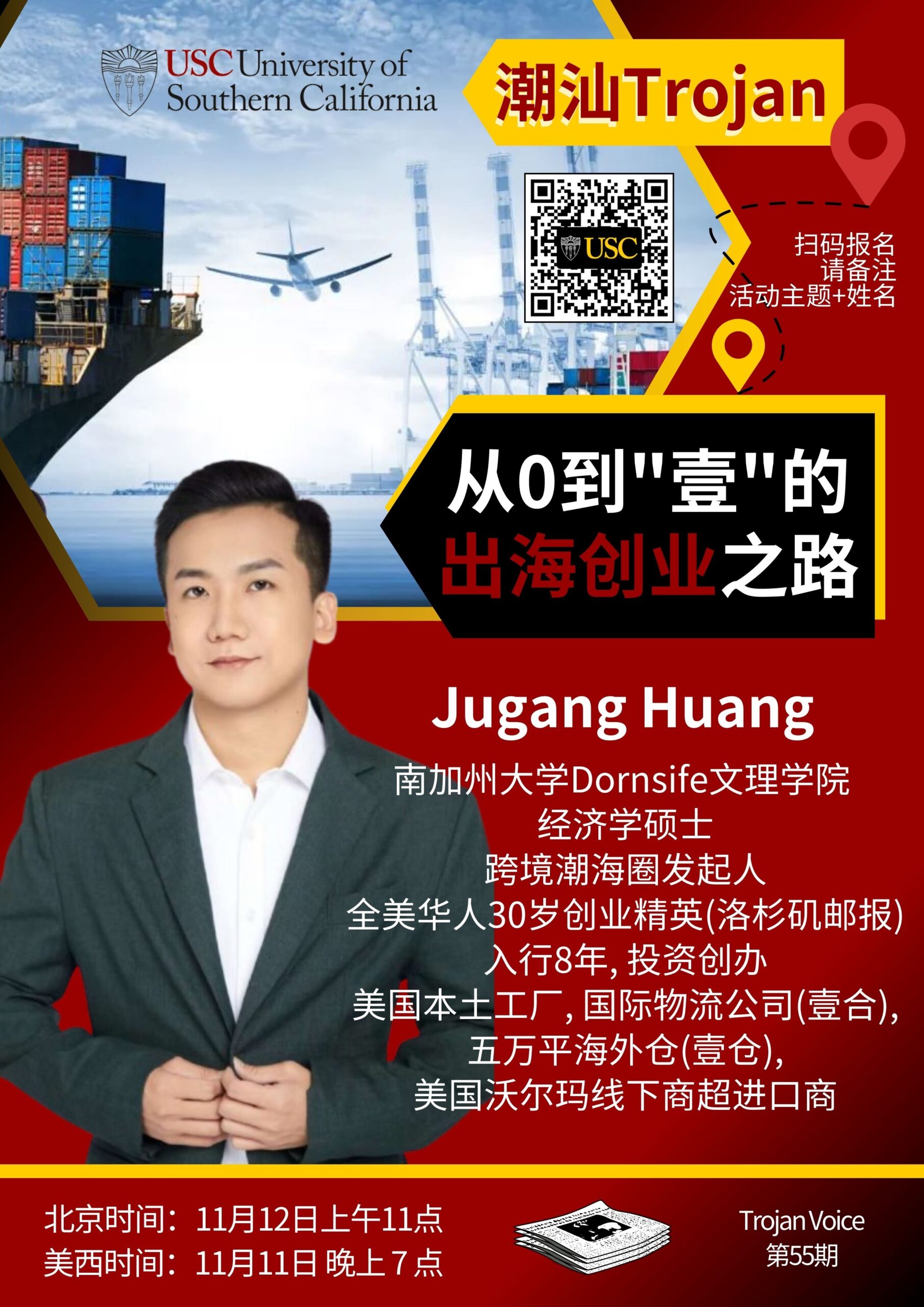 欢迎参加2024年11月12日北京时间上午11:00南加州大学国际学院举办的在线讲座《潮汕Trojan, 从0到”壹”的出海创业之路》。马上注册!