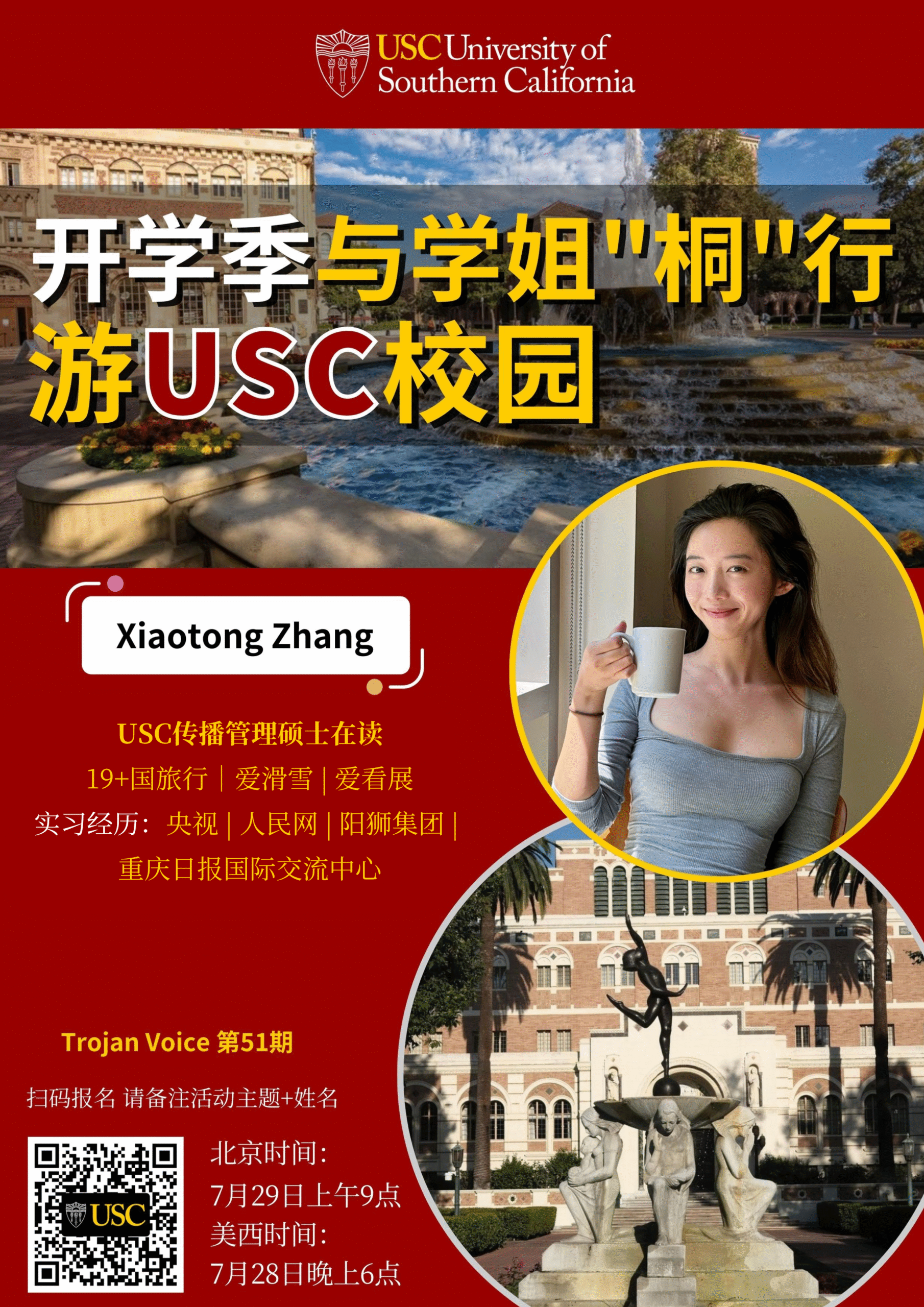 欢迎参加2024年7月29日北京时间上午9:00南加州大学国际学院举办的在线讲座《开学季:与学姐”桐”行 游USC校园》。马上注册!