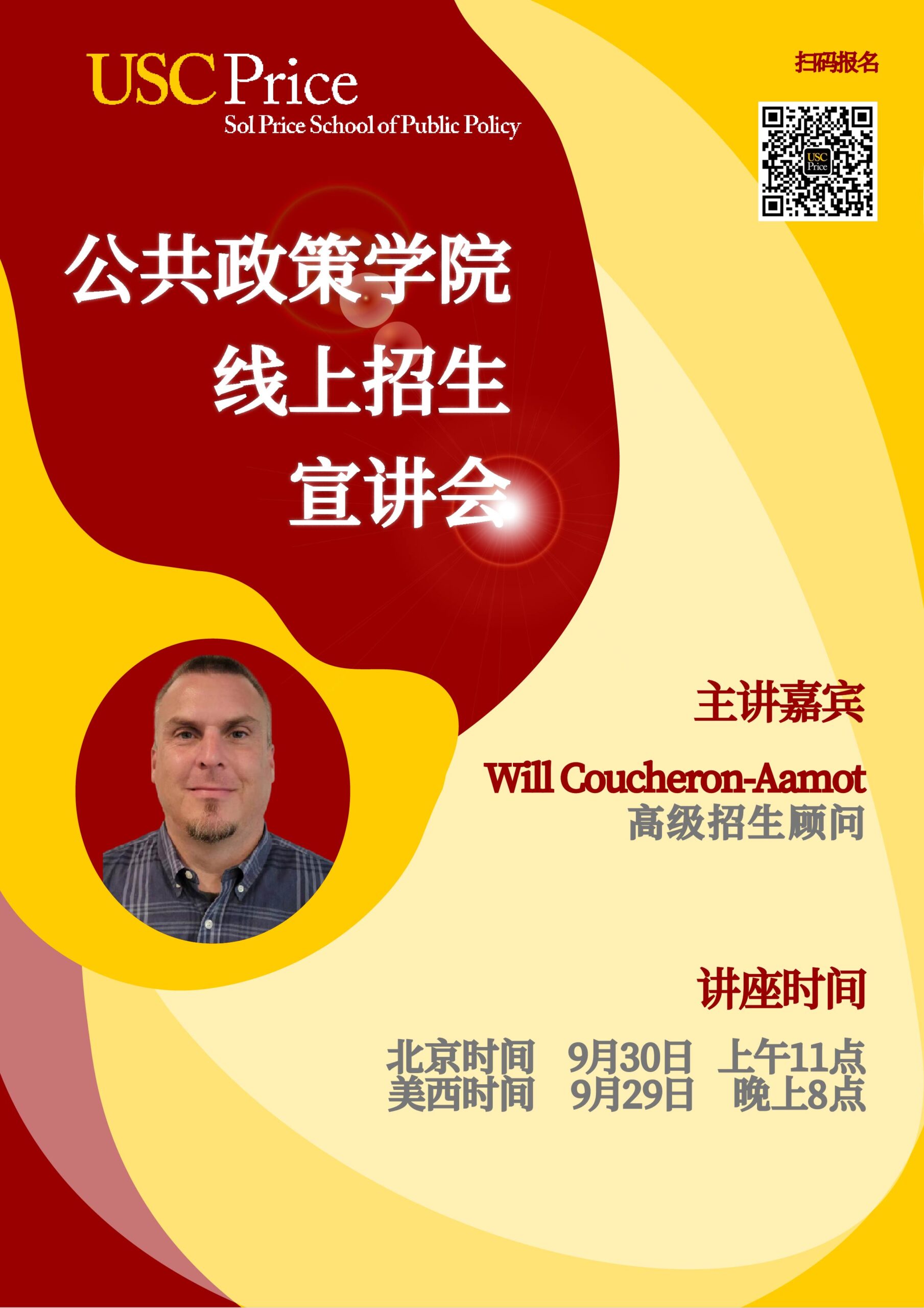 欢迎参加2022年9月30日北京时间上午11:00南加州大学Sol Price国际公共政策学院举办的在线讲座《公共政策学院线上招生宣讲会》。马上注册!